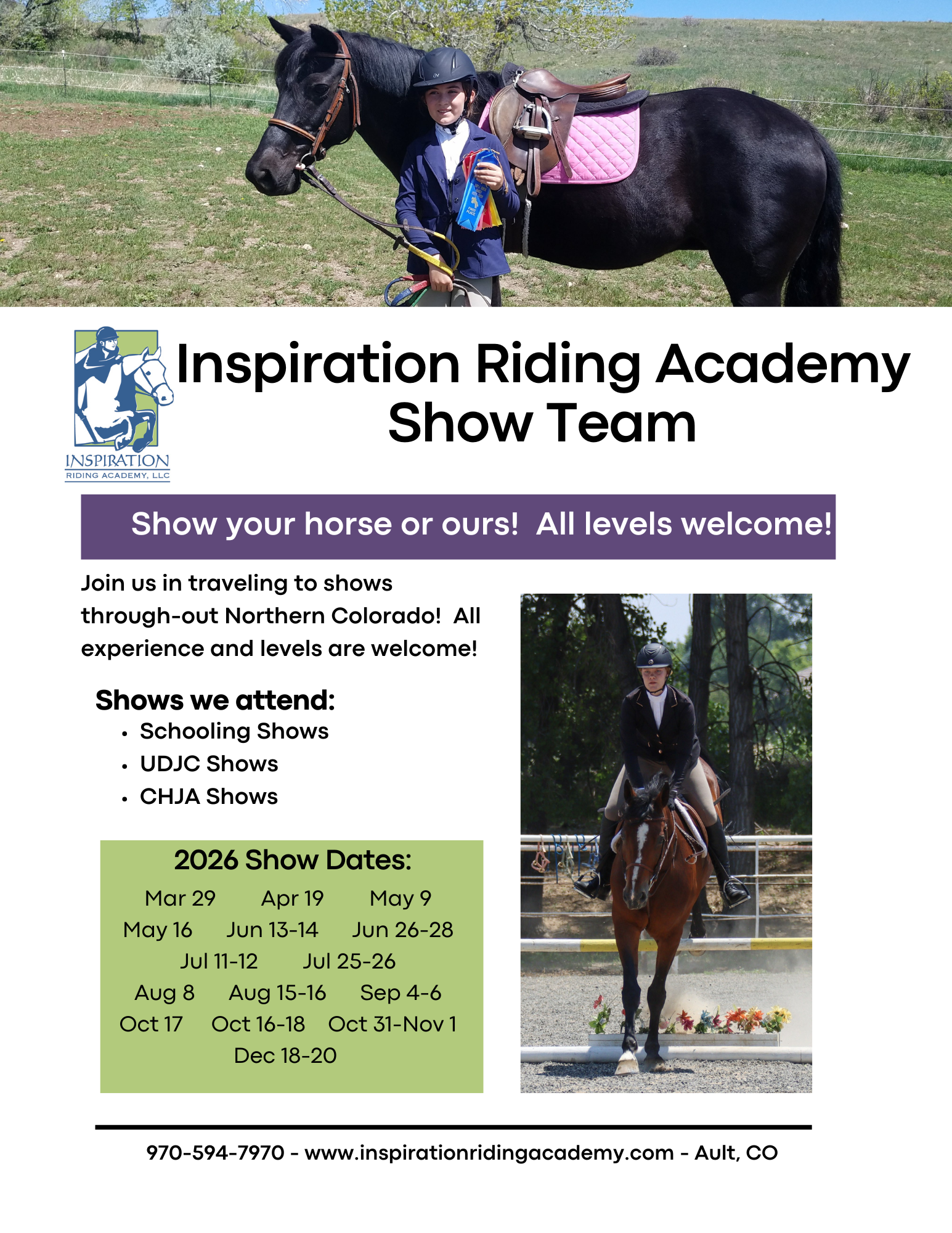Register for our Student Horse Shows Here: https://inspirationridingacademy.as.me/HorseShows
